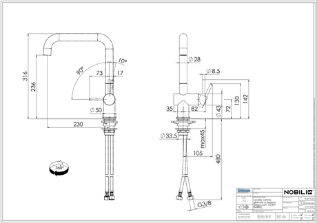 In stockSale priceFrom £197.96 Regular price £219.95Unit price Nobili Aquerelli L Spout Kitchen Tap with Dual Lever Control & Contemporary Italian Design