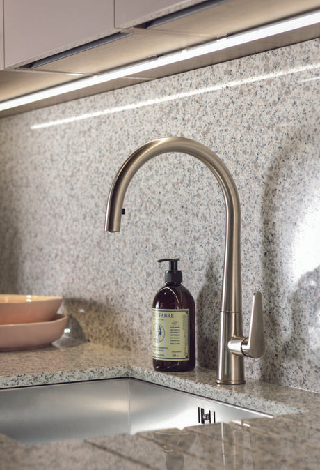 In stockRegular priceFrom £229.99Unit priceNobili Live Pull-Out L Spout Kitchen Tap with Spray Hose & Contemporary Italian Design