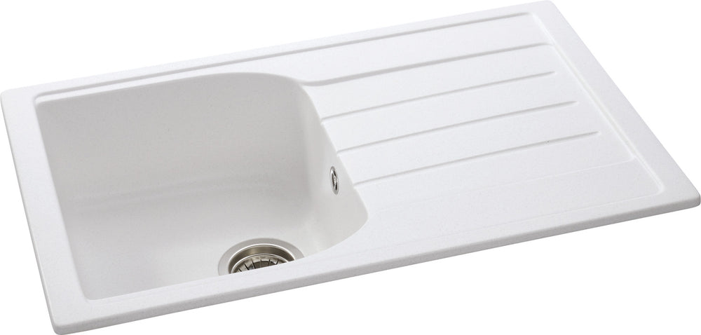 The Abode Oriel Inset Mount Single Bowl Kitchen Sink is a compact and stylish solution for kitchens with a 450 mm cabinet. Made from granite and acrylic composite with a black matt finish, it offers durability and modern aesthetics. The sink features a reversible design, allowing flexibility in drainer positioning to suit your kitchen layout. Its compact size is tailored to complement smaller kitchens without compromising on functionality.