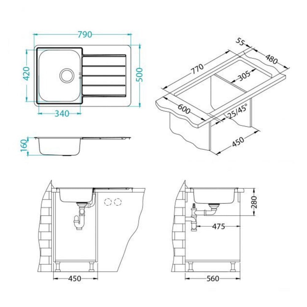 The Line 80 features a low-profile trim design that sits neatly on your worktop, giving a clean and contemporary look. With a smooth, semi-shiny surface, it is easy to maintain and resistant to everyday wear. Supplied with a siphon and waste kit included, installation is straightforward and hassle-free.