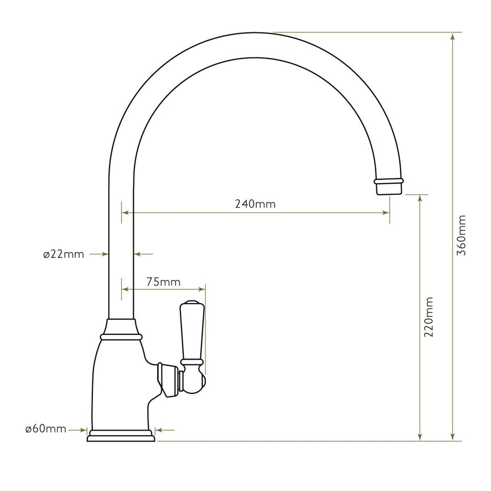 Experience the timeless elegance of a classic British kitchen with the Bidbury & Co. Malvern Single Lever Monobloc Kitchen Tap. A union of heritage style and modern convenience. Designed to complement both classic and contemporary kitchens, the Malvern tap transforms everyday washing into a statement of quality and sophistication. Traditional charm meets modern performance thanks to a gracefully arched C-spout that swivels through 360°, giving you effortless flexibility when filling pots or cleaning your sink. The single-lever control, topped with a refined porcelain handle, delivers smooth, precise regulation of water flow and temperature, simple to use yet unmistakably luxurious. Choose from an exquisite palette of premium finishes including Chrome, Polished Nickel, Pewter, Old English Brass and Patinated Brass, so you can perfectly match your tap to your kitchen’s cabinetry, worktops or aesthetic tone. Under the surface lies serious engineering, the Malvern’s specially developed control valve removes the backwards-movement common in most mixer taps, a clever design that not only improves reliability but also makes the tap ideal for installations where an upstand sits close behind the tap. Every detail is crafted for lasting elegance: the WRAS-approved ceramic valves and Neoperl aerator ensure smooth, consistent water flow with a refined “champagne”-style stream when using the eco aerator balancing performance with water efficiency. With a robust brass build and an included 5-year manufacturer’s guarantee, the Malvern range is designed to age gracefully and endure daily use for years to come. Whether you lean towards the bright, contemporary sheen of chrome or nickel, or prefer the warm character of pewter and brass that deepens with time, the Malvern mixer tap offers a refined finishing touch to your kitchen.
