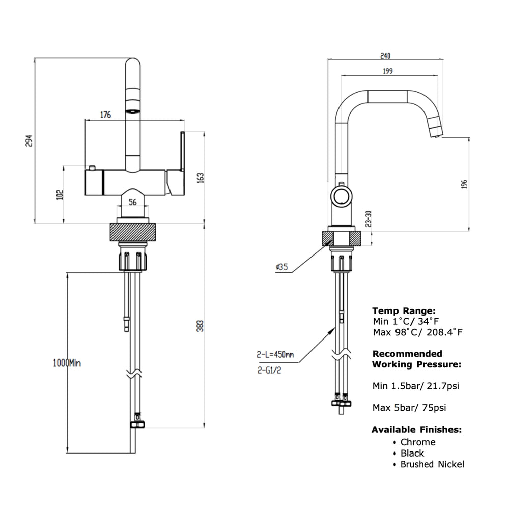 - Stylish finish options to match any kitchen décor: Chrome, Matt Black, Brushed Nickel, Gold and Gun Metal