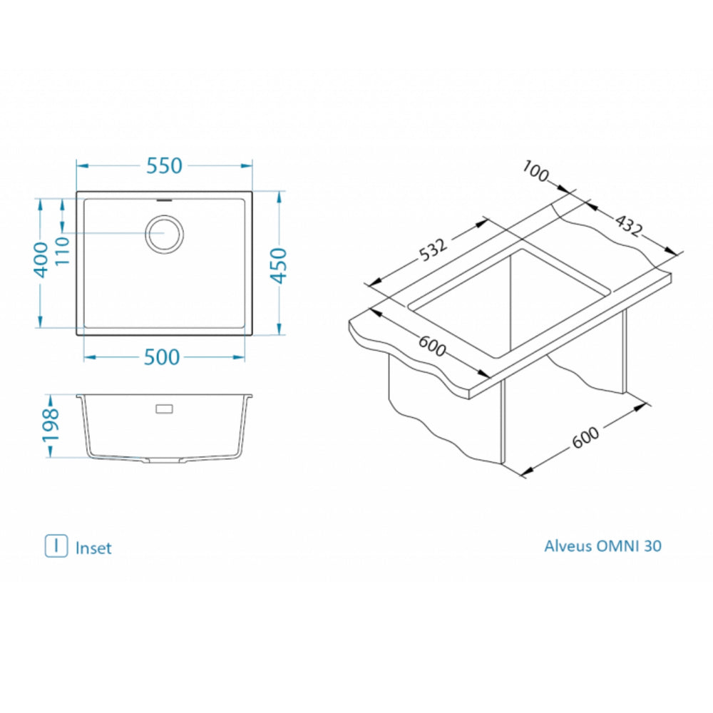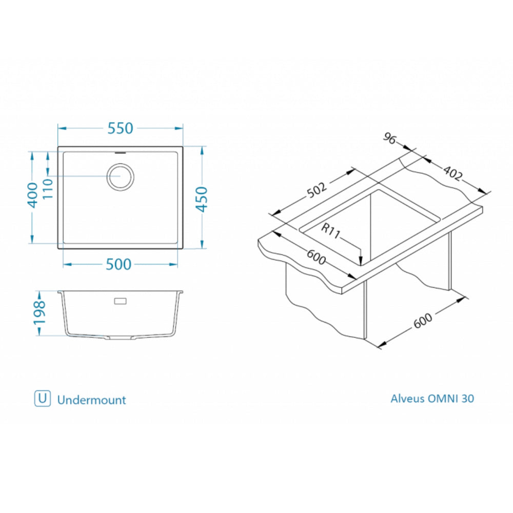 Alveus Omni 30 1.0 Bowl Undermount & Inset Kitchen Sink with Architectural Form & Luxe Appeal