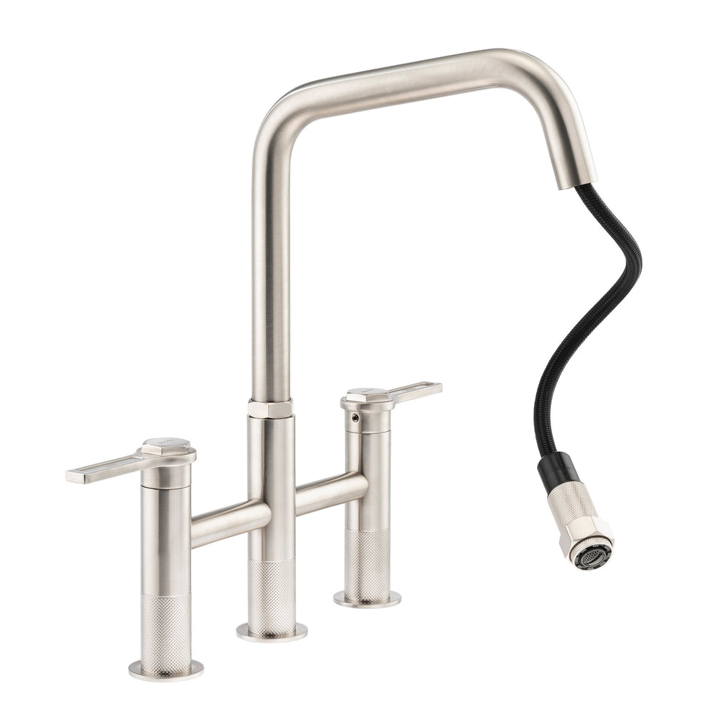 Abode Hex Dual Lever Pull Out Spray Bridge Kitchen Mixer Tap - Brushed Nickel is backordered and will ship as soon as it is back in stock.