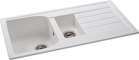 In stockRegular price £249.95Unit priceAbode Milford Inset Mount One And Half Bowl Kitchen Sink in Ceramic