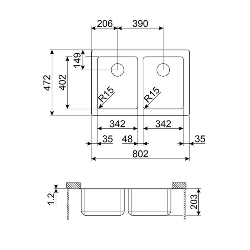 Designed to be installed beneath the worktop, this sink creates a seamless, integrated look that maximises worktop space and makes cleaning quick and simple. Each bowl features a subtle 15 mm radius corner and built-in overflow for practical, user-friendly performance. With robust construction that resists scratches, impacts and corrosion, this sink is built for everyday use and keeps your kitchen looking pristine.